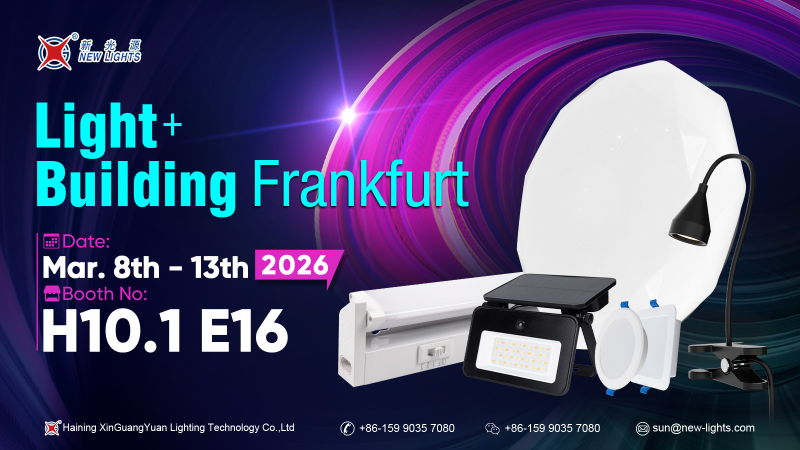 Beidh Haining Xin Guang Yuan Lighting Technology Co., Teo rannpháirteach sa taispeántas soilsithe idirnáisiúnta i Frankfurt, an Ghearmáin, ó 8 Márta go 13 Márta, 2026 . Beidh an comhlacht ag taispeáint ag Booth H10.1 E16 . Le linn an taispeántais, taispeánfaidh Haining Xin Guang Yuan Lighting Technology Co., Teo a teicneolaíochtaí soilsithe is déanaí agus réitigh táirgí, agus déanfaidh sé malartuithe domhain le gairmithe tionscail agus comhpháirtithe ó ar fud an domhain. Tá fáilte roimh chuairteoirí stopadh ag an mboth le haghaidh plé agus deiseanna comhoibrithe.